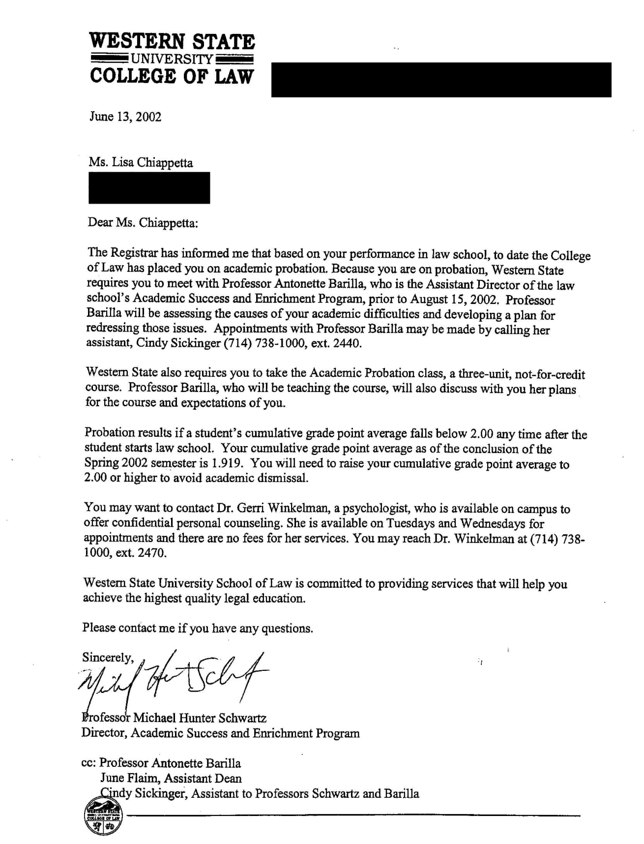 P.P.S. I kept my probation letter. During law school, I stored it in the glove box of my sweet '91 Acura Integra as a reminder that I was capable of anything (super helpful those first 5 years of the practice, too). Today, it proudly hangs next to my JD and license on the wall of my very own office, Blasser Law, PC. It still reminds me every day.