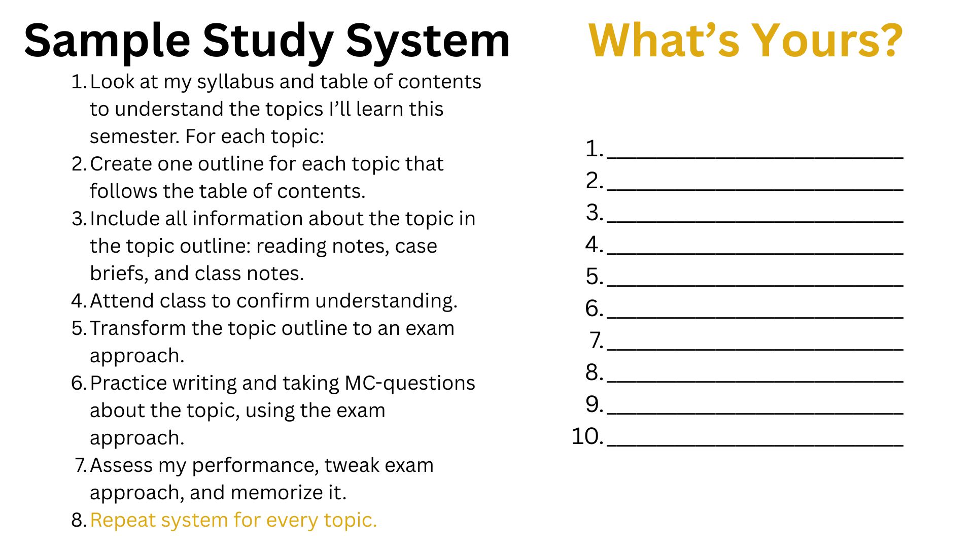 What I love most about that question is that, by the time weâre done, the student already has a lot of clarity about how to improve performanceâbefore I even have a chance to introduce my proven study system.