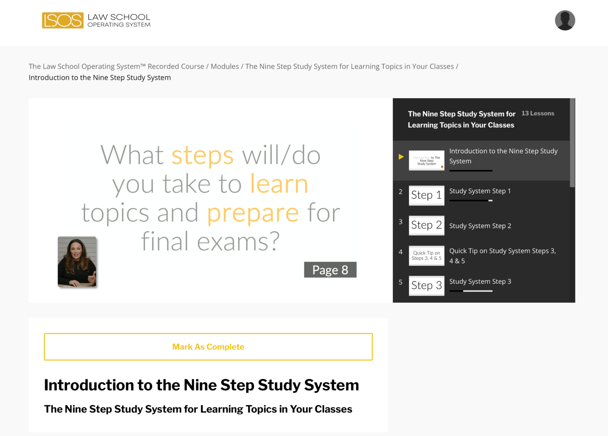 We’ll start with the course goals and the science behind why this system works. You’ll see how to use it effectively based on your needs—whether you’re a 1L, 2L, 3L, or 4L—to strengthen your skills and boost your performance.